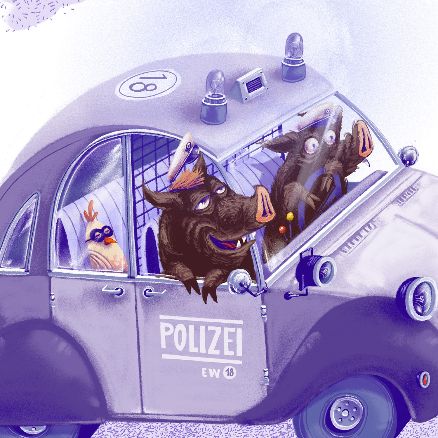 Tatütata mit Wildschweinen, Hühnchen, Fisch und natürlich Mäusen. Ergänzbar mit den Postern der Rettungswagen Reihe: Krankenwagen und Feuerwehr.